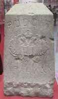 Border stones marking the north-south boundary between Russian and Japanese territory after the Russo-Japanese War